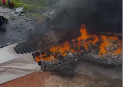 Uma colisão entre duas carretas terminou com um dos veículos capotado e em chamas na tarde desta quinta-feira (26), em um trecho da BR-101, no município de Joaquim Gomes, interior de Alagoas. O aciden...
