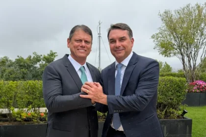 O governador de São Paulo, Tarcísio de Freitas, recebeu o senador e pré-candidato à Presidência Flávio Bolsonaro (PL) se reuniram no Palácio dos Bandeirantes, sede do governo paulista, nesta sexta (27...