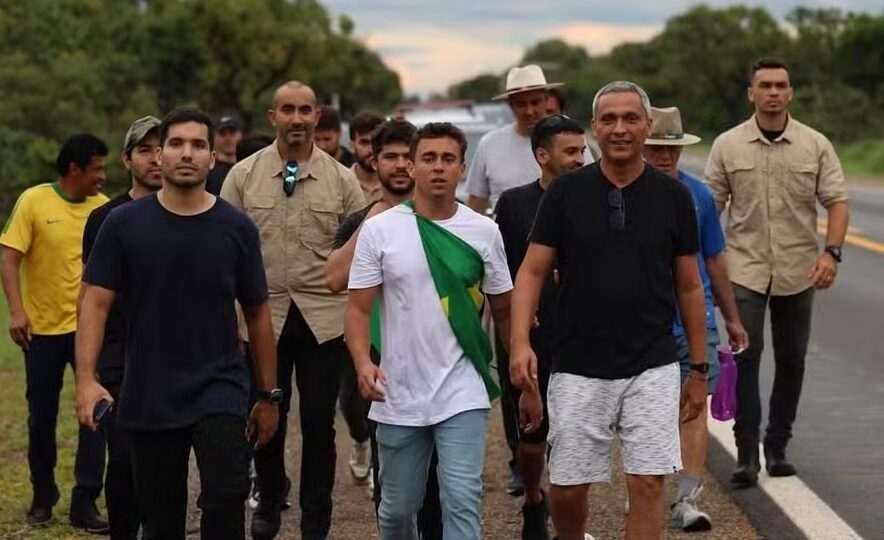 O deputado Nikolas Ferreira (PL-MG) finalizou o segundo dia da caminhada rumo a Brasília com um discurso aos apoiadores. A mobilização teve início no último domingo (18) e foi batizada de “Caminhada pela Justiça e Liberdade”, com previsão de percorrer mais de 240 quilômetros. O ato protesta contra as prisões consideradas, pelo deputado e por seus apoiadores, injustas, relacionadas aos eventos de 8 de janeiro de 2023, além do que classificam como “perseguição” ao ex-presidente Jair Bolsonaro (PL).