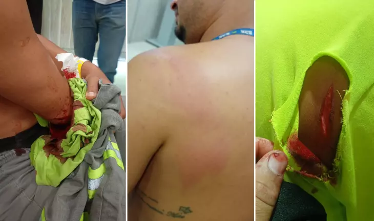 No vídeo, o suspeito aparece avançando contra os funcionários em plena via pública. Durante o ataque, dois trabalhadores são atingidos nas mãos enquanto um terceiro acaba ferido nas costas.
